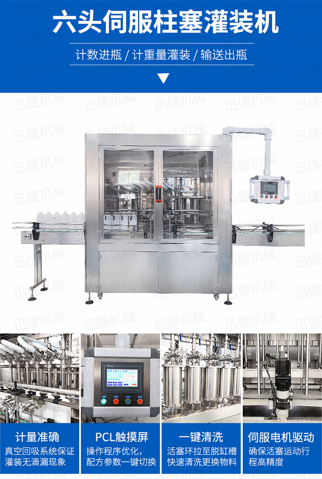 全自動16頭伺服柱塞灌裝機是我公司精心設(shè)計的新款灌裝機,本伺服柱塞灌裝機,采用PLC和觸摸屏自動化控制,具有計量準(zhǔn)確、結(jié)構(gòu)運行平穩(wěn)、噪音低、調(diào)節(jié)范圍大、灌裝速度快等優(yōu)點。而且對易揮發(fā)、易結(jié)晶、易起泡的液體;對橡膠、塑料有極強的腐蝕的液體,以及高粘度的液體、半流體都能適應(yīng)。在人機界面數(shù)字化調(diào)節(jié)計量,并且可設(shè)定100ml或200ml等所需計量,觸摸屏一觸即達(dá),而且可以單頭微調(diào)計量。
