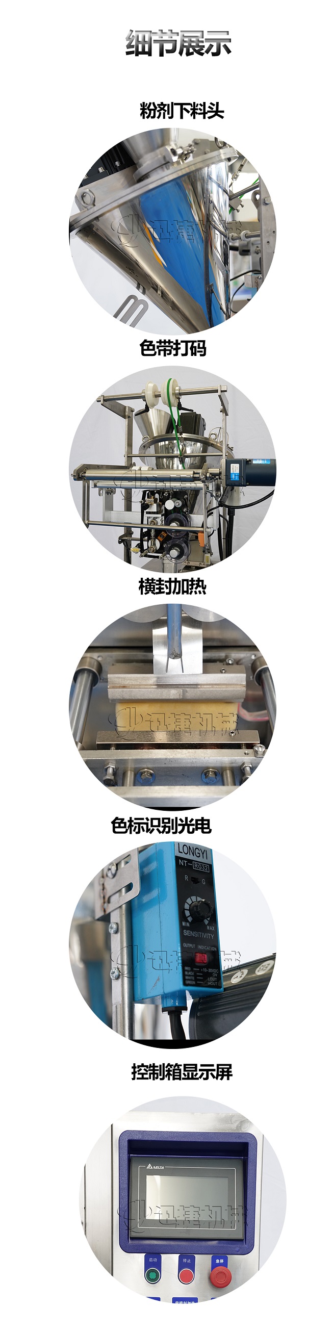 粉劑包裝機,可完成三邊封、四邊封、背封、異形狀袋形,可對粉末狀狀物料進(jìn)行定量包裝。