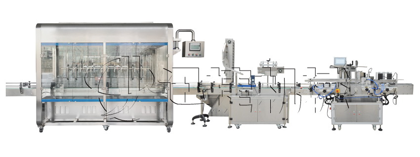 自動油類灌裝旋蓋貼標流水線